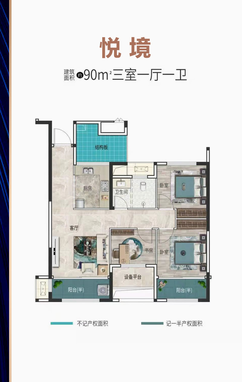 建面约 : 90.00㎡