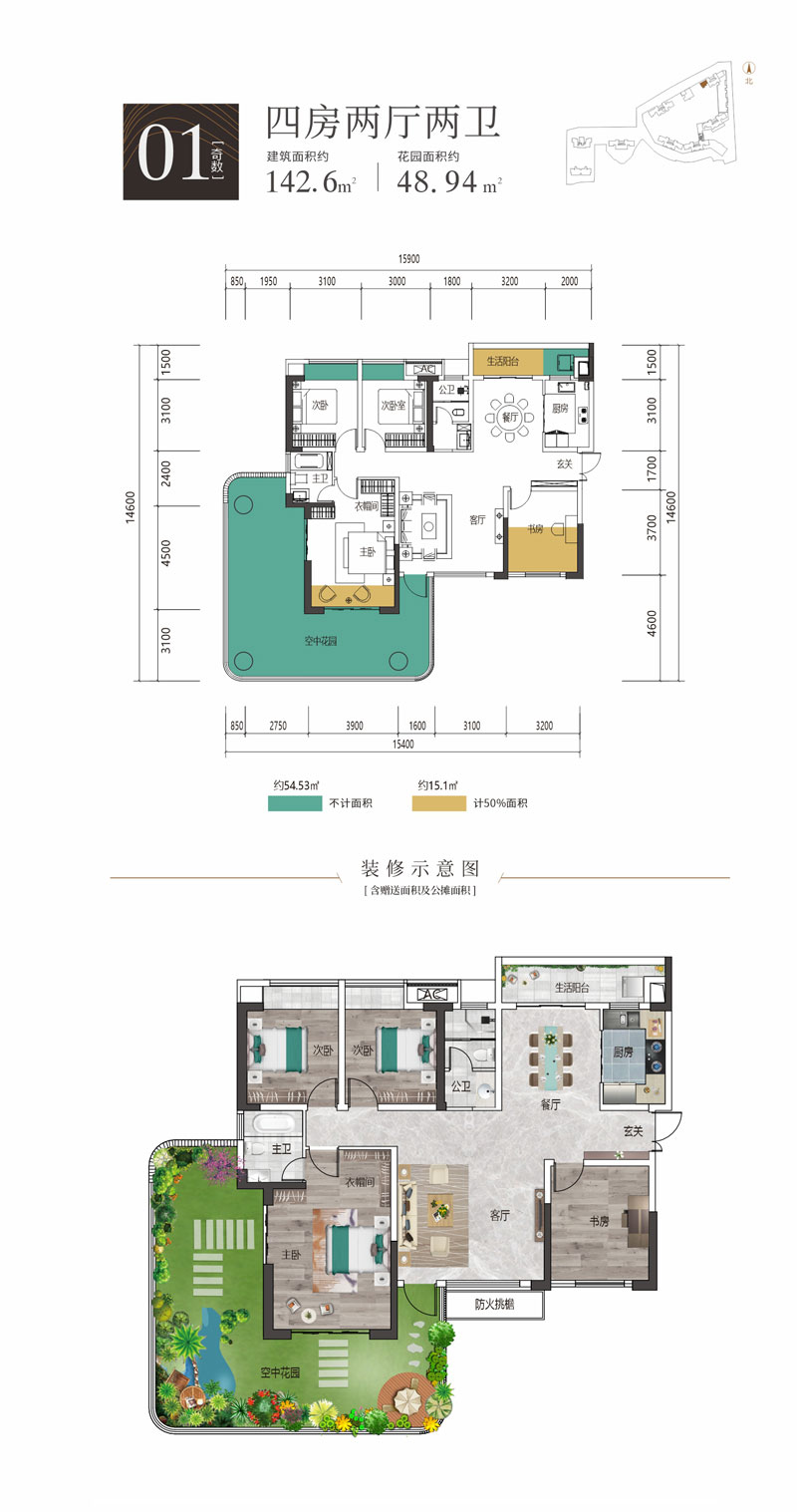 建面约 : 142.60㎡