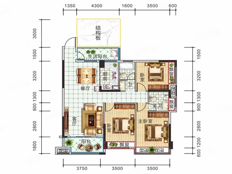 3室2厅1厨2卫