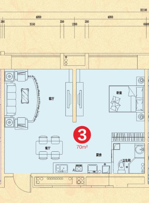 建面约 : 70.00㎡