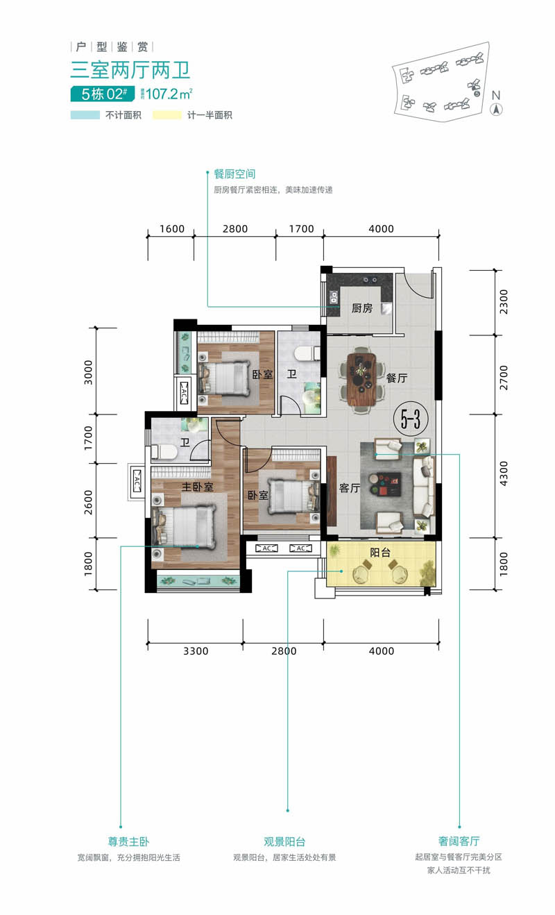 建面约 : 107.20㎡