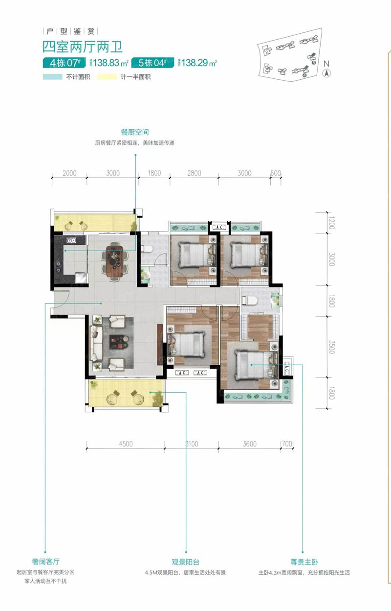 建面约 : 138.29㎡