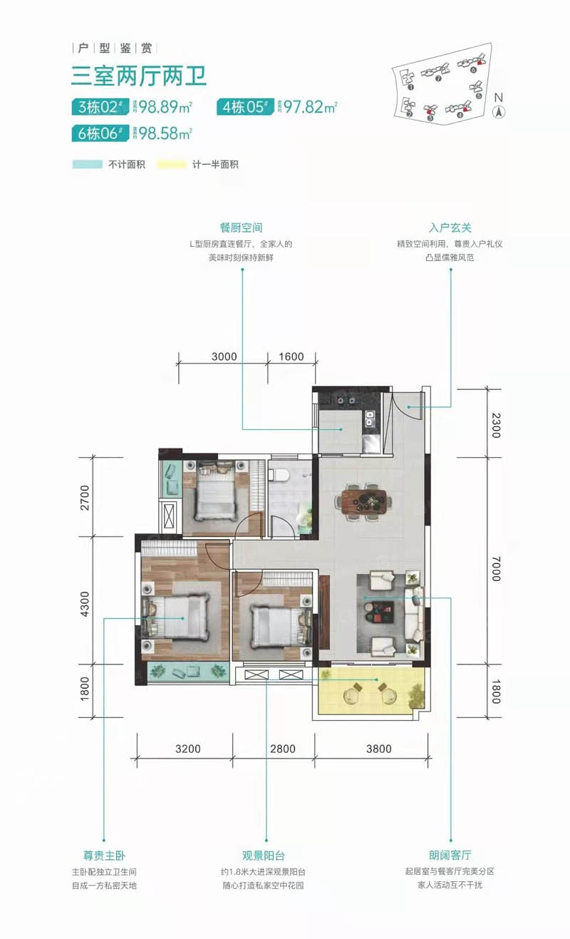 建面约98.58㎡