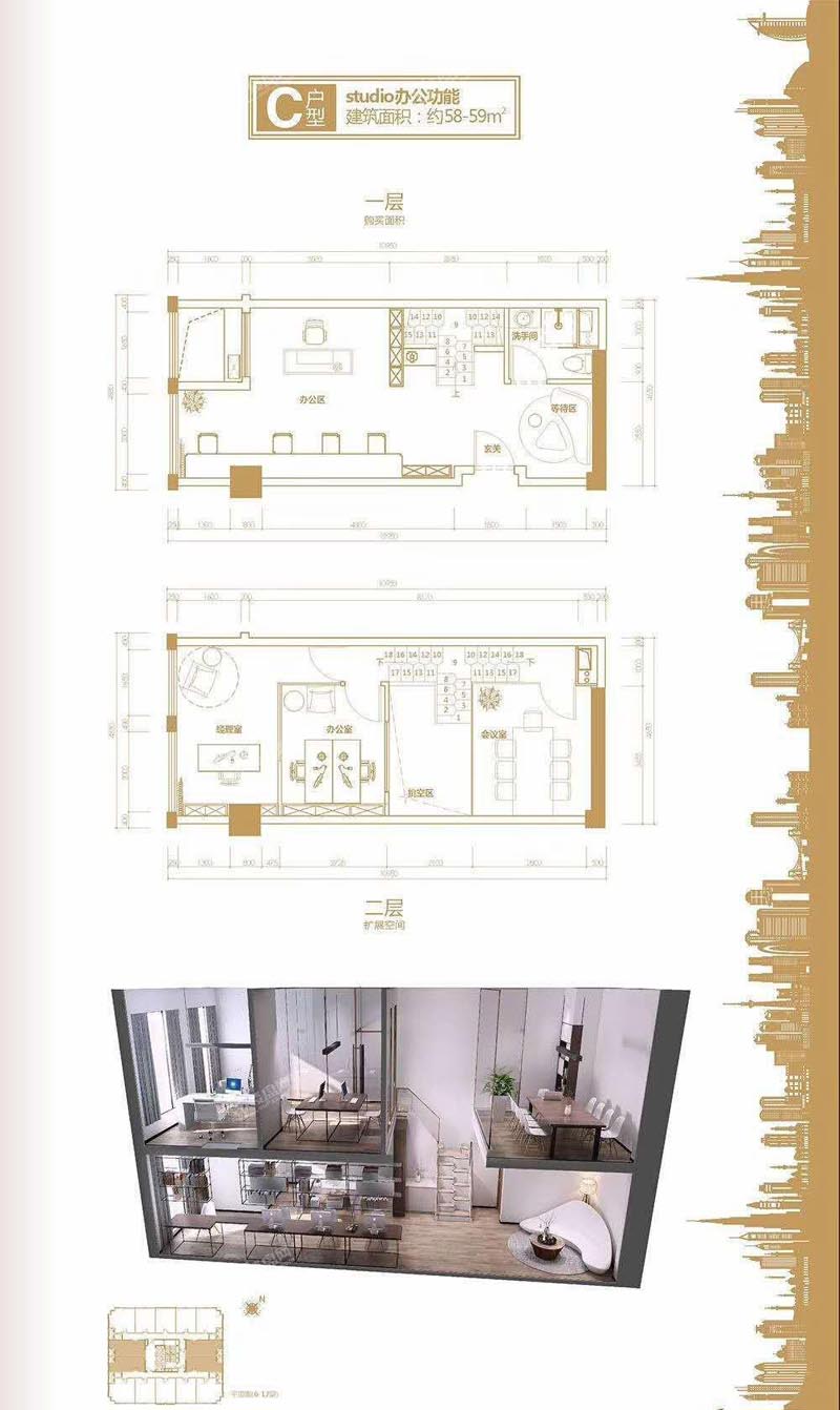 建面约 : 59.00㎡