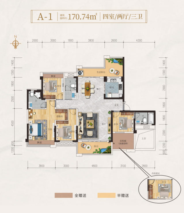 建面约 : 170.74㎡