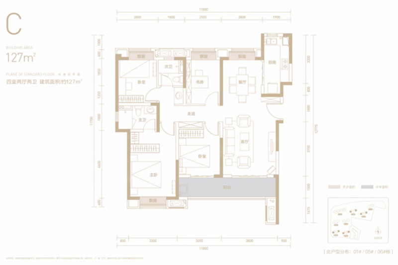 建面约 : 127.00㎡