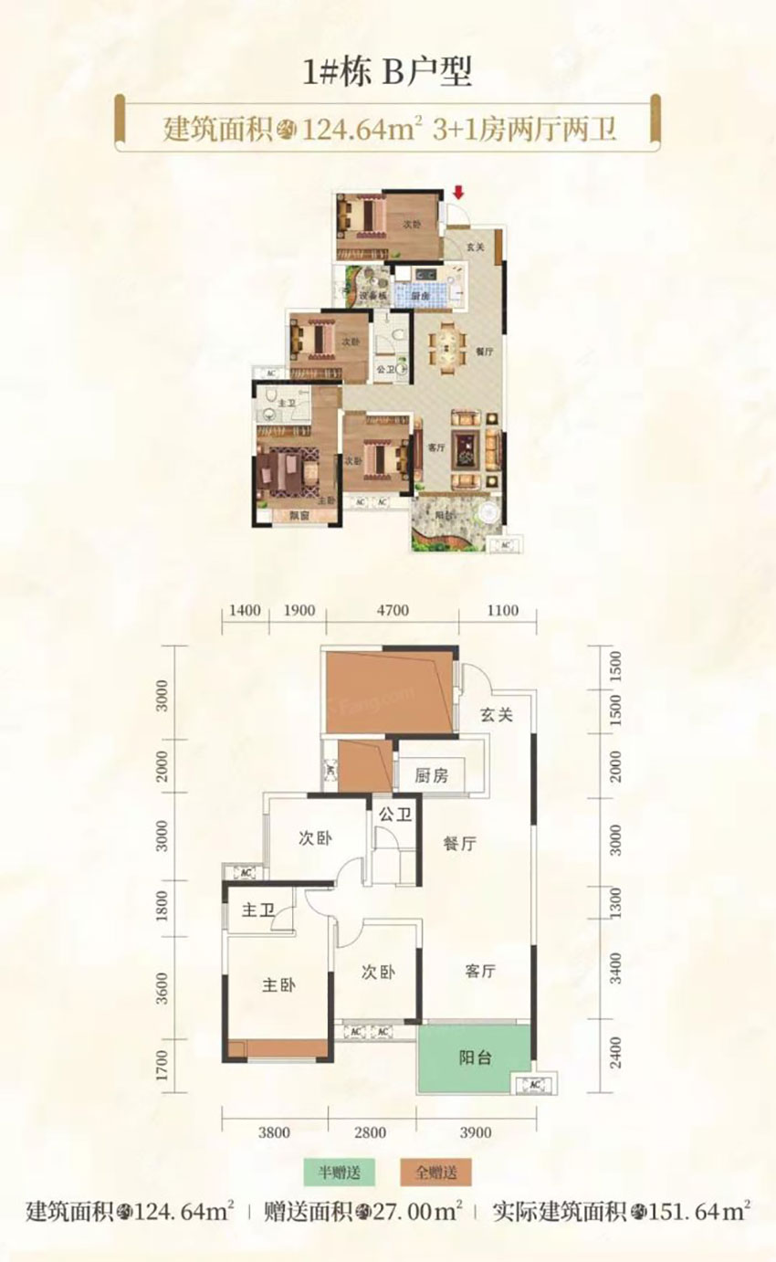 建面约 : 124.64㎡