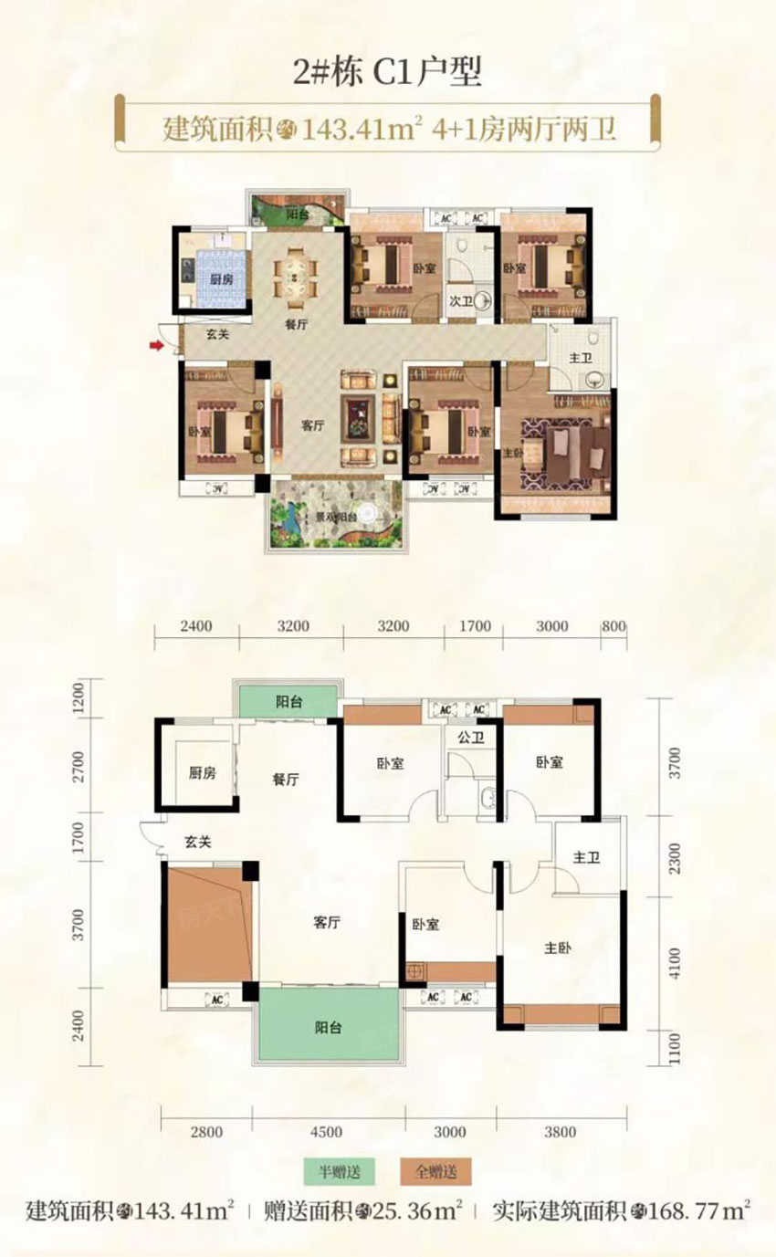 建面约 : 143.41㎡